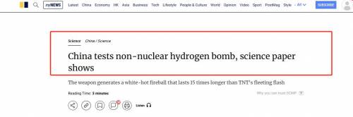4月19日,香港《南华早报》报道,中国于近期成功进行了一次“非核氢弹”的受控试验,显示出中国军队对“威力增强型常规弹药”的研发投入了相当的经费和兴趣,引发国际关注。