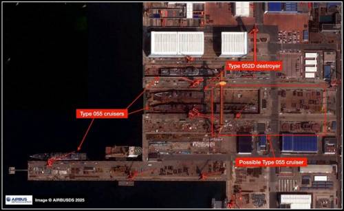 空客公司的卫星扫过中国北方某船厂,很快055型万吨驱逐舰挤满船台的消息传遍全网,很显然,解放军“下饺子”不打算停手。