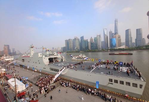 071型船坞登陆舰沂蒙山舰停靠在黄浦江畔