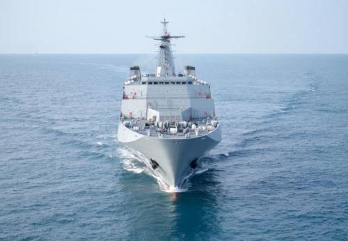 快速机动中的071型船坞登陆舰