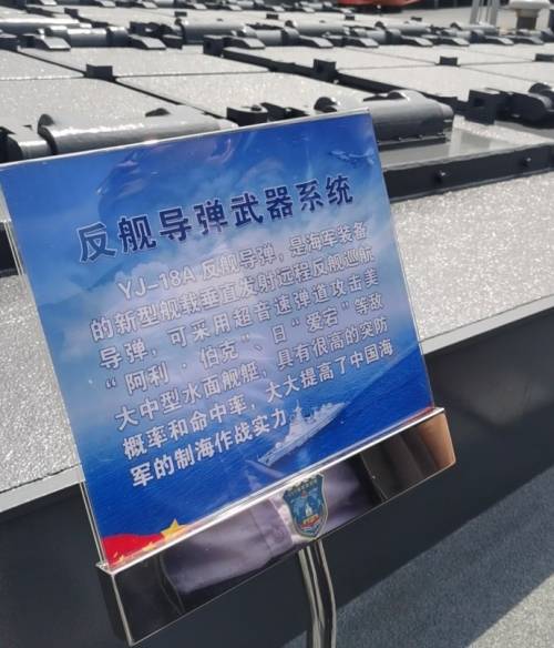 从国内社交媒体平台上流出的照片来看,于“海军节”开放日登上052D型驱逐舰“南京舰”参观的网友,发布了一张照片,其对“A”反舰导弹的介绍展板进行了拍摄。展板中,赫然出现了一句“可采用超音速弹道攻击美‘阿利·伯克’、日‘爱宕’等敌大中型水面舰艇”。看到这里,恐怕不少人都会小小地震惊一下:好嘛,这等于是直接点名了,把美国海军“伯克”级和日本海上自卫队“爱宕”级之类的“宙斯盾”舰,均划入了“敌人”的范畴。