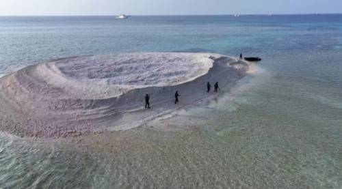 这一次中国海警登临铁线礁并展现五星红旗,一是彰显了中方对铁线礁无可争辩的主权;二是展现了中国海警已经对这个礁行使主权的管辖权;三是戳破了菲律宾散布的铁线礁珊瑚可能是中方“人工堆积而成”的谎言,因为可以明显看出来,这个礁上的沙滩就是随着潮水流动堆积而成的。