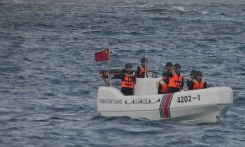去年3月份,菲律宾曾经两次出动船只和人员强登铁线礁,但是都被我方的直升机给吹跑了。后来这个礁被我方实际控制中。今年年初,菲律宾再次出动了包括3003号和3004号在内的两艘公务船只,企图强行冲入铁线礁,还企图释放小艇,在铁线礁登陆并且采集砂样,但两次都被中国海警依法进行了管制警告和驱离。