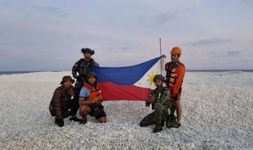 中国海警人员刚登上南海铁线礁,在礁盘上展示了五星红旗宣誓主权,没过几天,菲律宾军方就派人突破了中国海警的封锁线,紧随中方脚步非法登上了铁线礁,还大摇大摆亮出了菲律宾国旗,笑容满面合影留念,挑衅意味十足。而在菲军登上铁线礁的消息传来后,菲国内也是一片欢腾,吹嘘此举展示了菲律宾的实力云云。