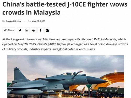 以“bulgarianmilitary”网站的视角来看,歼-10CE的实战成绩,已经开始影响到东南亚国家的想法——包括马来西亚副总理在内,航展上有大量人群围观歼-10CE,就是最明显的证据。事实上,马来西亚最近正在添购战斗机,目前选择的是韩国FA-50、科威特二手F/A-18,其中前者已经敲定,后者还在酝酿之中。关键在于,歼-10CE在价格只是稍贵的情况下,战斗力和服役时间,都远强于这两款战斗机。马来西亚最起码,“需要认真考虑采购歼-10CE的可能性,而不是像以前那样直接放弃”。