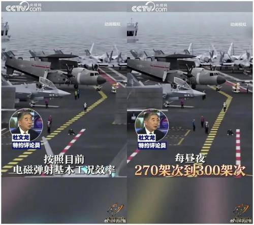 ▲央视节目公开透露福建舰可在一天之内实现270~300架次舰载机的弹射作业