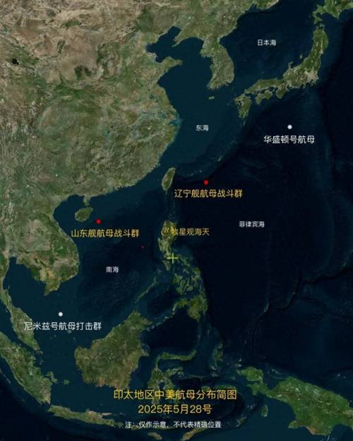 与此同时,解放军山东号航母战斗群也已出动至南海,形成对台湾地区东南、西南两个战略方向的双向夹击态势。与之呼应的是,美军派遣两艘核动力航母“乔治·华盛顿”号和“尼米兹”号分别位于日本海与南海附近区域,呈现罕见的中美航母首次2对2对峙局面。