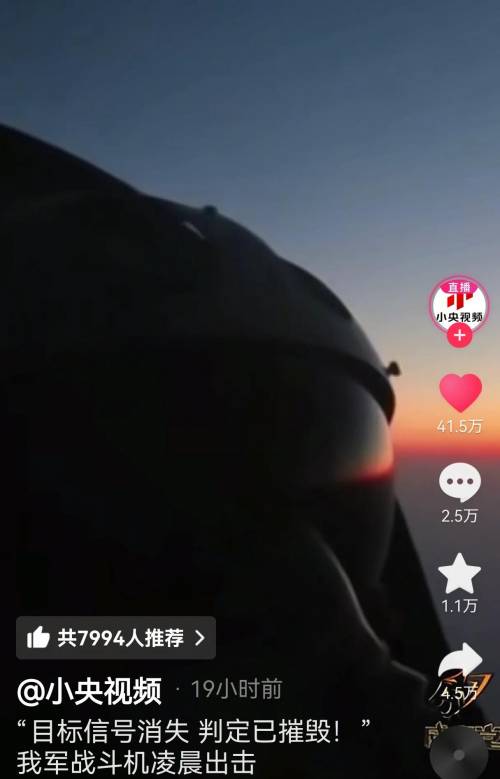 而在视频的画面中,显示的是一段战斗机飞行的画面以及飞行员的语音,与标题内容保持一致。尤其是视频的最后画面,更是引起了很多朋友的联想。