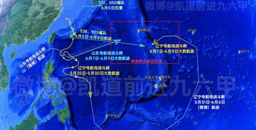 日本防卫省连续两天,发布中国海军航母编队的动向信息。在第一艘航母穿越第二岛链,现身关岛以东海域的同时。山东舰编队也在高速向东航行,在6月9日抵达了硫磺岛西部海域。
