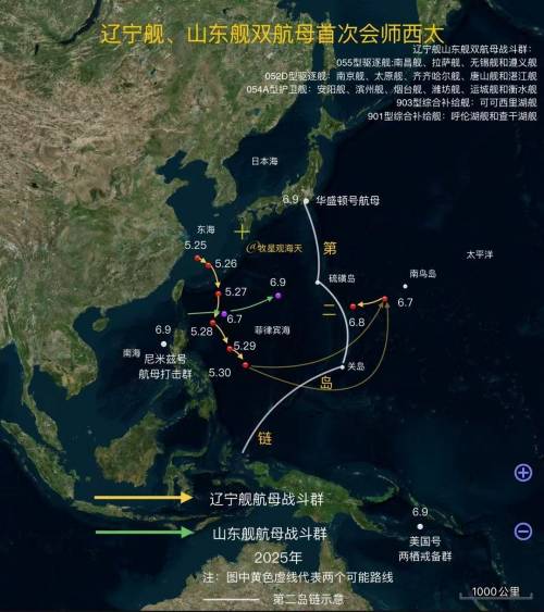 外界根据目前两艘航母的活动方向推算,第一艘航母与山东舰极有可能在硫磺岛附近海域碰面,并组织第二次双航母演习,而这也将是中国海军首次在西太平洋上完成双航母编队会师。