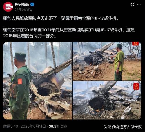 除了美国的《防务新闻》,另外一个叫作“冲突报告”账号,也曾经在X平台上披露了缅甸空军JF-17枭龙战机被缅甸解放军击落的消息,最终被证实是错误信息。