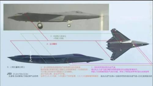 歼-50的气动布局几乎达到了“完美隐身”的效果,雷达反射面积大大减小,实现了全向隐身能力。这表明歼-50不仅要追求空中优势和高级制空能力,还特别注重在各种战场环境下的高生存能力。使得该机在机动与隐身需求达到一个良好的平衡。