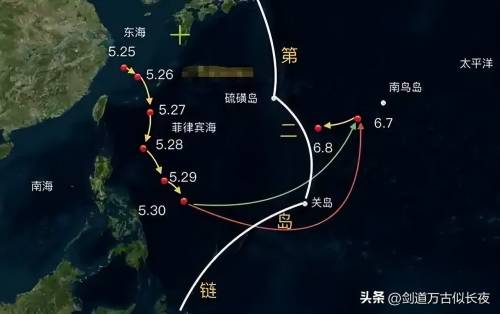 先说说最先抵达,也是第一次到第二岛链核心区,硫磺岛以东、南鸟岛附近海域的第一艘航母航母战斗群吧。